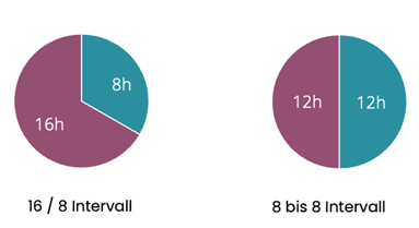 Wenn für dich die 16/8 Form zu extrem ist oder aufgrund deines Alltags nicht umsetzbar ist, gibt es auch alternative Formen, wie beispielsweise das «12/12 Intervall». Dabei wird versucht, zwischen abends um acht und morgens um acht keine Nahrung mehr zu sich zu nehmen. Auch bei dieser Form wird bereits Recycling in unserem Körper betrieben und Sie geben Ihrem Darm eine Pause.
